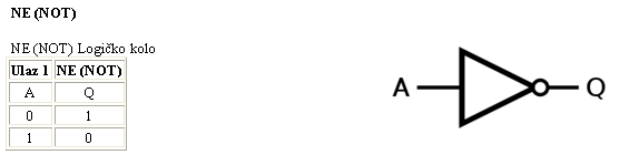 (NOT), ili izvedene logičke operacije kao što su: NI (NAND), NILI (NOR),